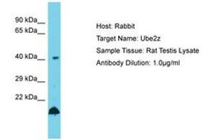 Synthetic peptide located between aa208-257 of rat Ube2z (Q3B7D1, NP_001032732). Percent identity by BLAST analysis: Human, Chimpanzee, Mouse, Rat, Bovine, Rabbit, Horse, Pig, Guinea pig (100%).