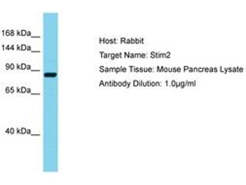 Synthetic peptide located between aa663-712 of mouse Stim2 (NP_001074572). Percent identity by BLAST analysis: Mouse (100%).