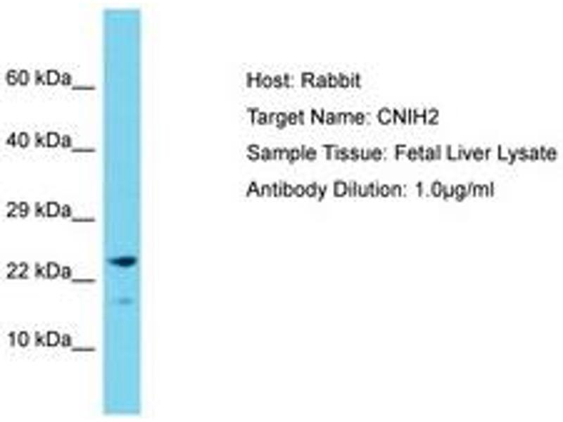 Synthetic peptide from C-Terminus of human CNIH2 (Q6PI25, NP_872359). Percent identity by BLAST analysis: Human, Chimpanzee, Mouse, Rat, Pig, Guinea pig (100%).