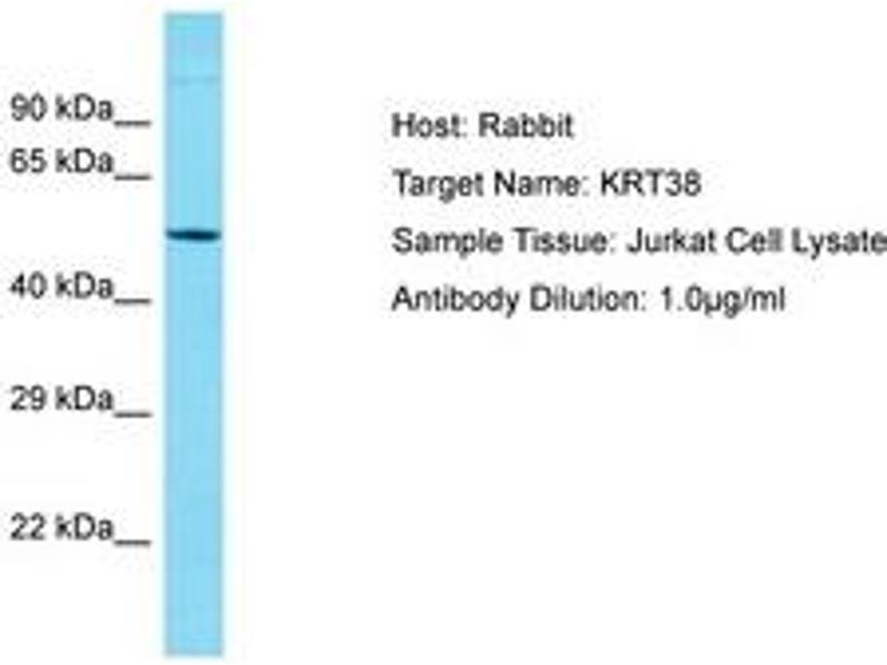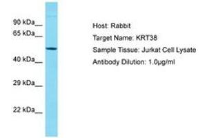 Synthetic peptide located between aa94-143 of human KRT38 (O76015, NP_006762). Percent identity by BLAST analysis: Human, Chimpanzee (100%).
