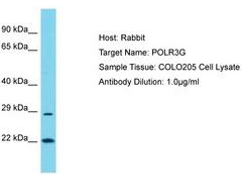 Synthetic peptide located between aa88-137 of human POLR3G (O15318, NP_006458). Percent identity by BLAST analysis: Human (100%).