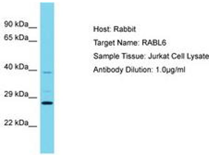 Synthetic peptide located between aa67-116 of human RABL6 (Q3YEC7-6, NP_001167460). Percent identity by BLAST analysis: Human (100%).