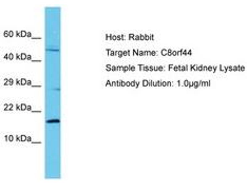 Synthetic peptide located between aa33-82 of human C8orf44 (Q96CB5, NP_062553). Percent identity by BLAST analysis: Human (100%).