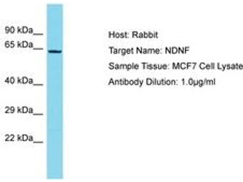 Synthetic peptide located between aa490-539 of human NDNF (Q8TB73, NP_078850). Percent identity by BLAST analysis: Human, Chimpanzee (100%).