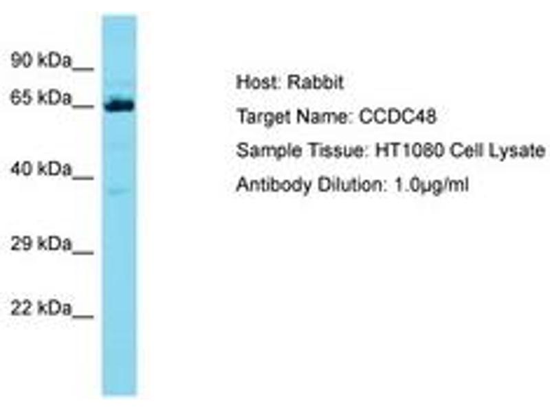 Synthetic peptide located between aa319-368 of human EFCC1 (Q9HA90, NP_079044). Percent identity by BLAST analysis: Human (100%).