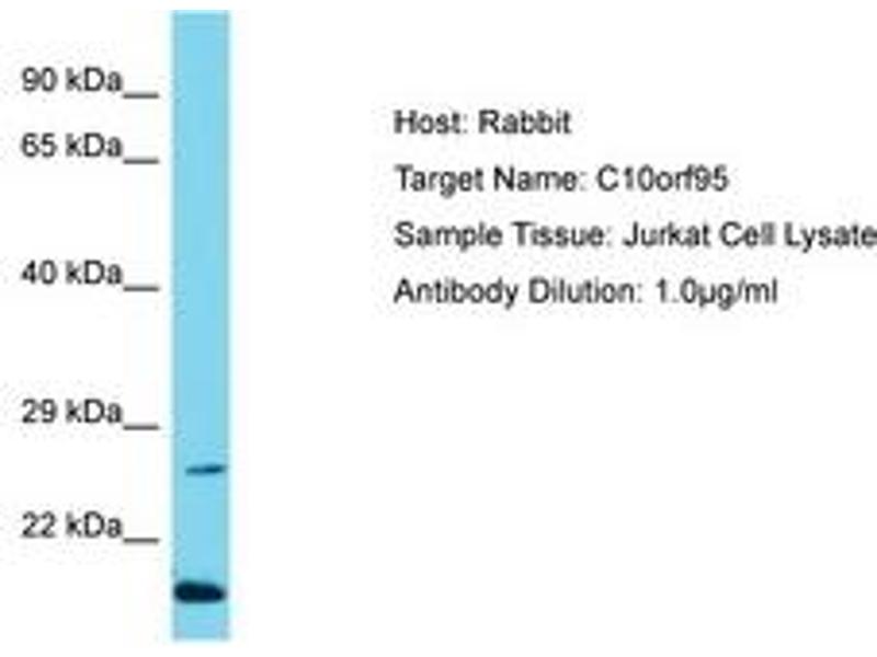 The Rabbit Polyclonal anti-C10ORF95 antibody has been validated for WB. It is suitable to detect C10ORF95 in samples from Human.