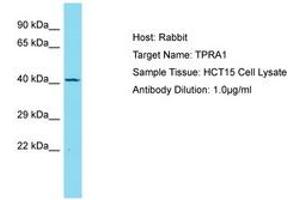 Synthetic peptide located between aa269-318 of human TPRA1 (Q86W33, NP_001129525). Percent identity by BLAST analysis: Human, Chimpanzee, Rabbit (100%).