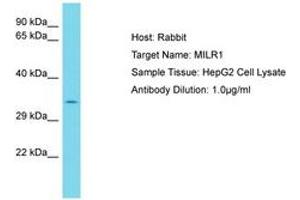 Synthetic peptide located between aa253-302 of human MILR1 (Q7Z6M3, NP_001078892). Percent identity by BLAST analysis: Human (100%).