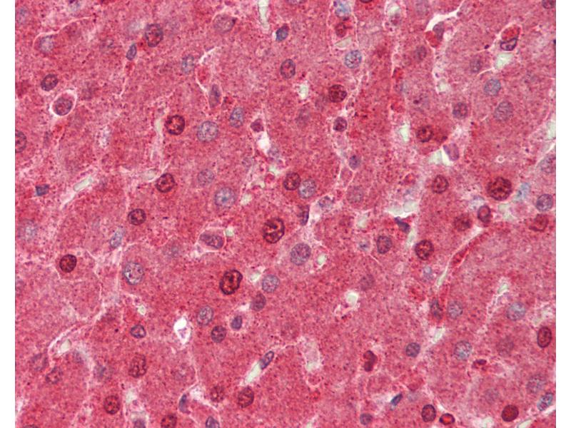 Synthetic peptide from N-Terminus of human AIRE (O43918, NP_000374). Percent identity by BLAST analysis: Human, Gorilla, Monkey, Galago, Mouse, Rat, Elephant, Dog, Horse, Guinea pig (100%), Bovine (92%), Opossum (91%), Platypus (83%).