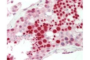 Synthetic peptide located between aa38-87 of human RBPMS (Q93062, NP_001008710). Percent identity by BLAST analysis: Human, Chimpanzee, Gibbon, Monkey, Galago, Marmoset, Mouse, Rat, Elephant, Dog, Bovine, Bat, Rabbit, Horse, Pig, Opossum, Guinea pig, Turkey, Zebra finch, Chicken, Platypus, Xenopus, Salmon, Stickleback, Pike, Zebrafish (100%), Gorilla (85%).