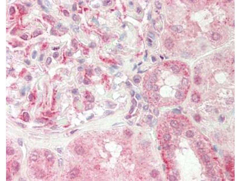 Synthetic peptide located between aa31-80 of human GABARAPL1 (Q9H0R8-2). Percent identity by BLAST analysis: Human, Chimpanzee, Gorilla, Orangutan, Gibbon, Monkey, Galago, Marmoset, Mouse, Rat, Hamster, Elephant, Panda, Dog, Bovine, Bat, Rabbit, Horse, Pig, Opossum, Guinea pig, Chicken, Xenopus, Trout, Catfish, Salmon, Smelt, Sablefish, Stickleback, Medaka, Pike, Pufferfish, Sea squirt, Drosophila, Mosquito, Sea anemone (100%), Tick (92%), Nematode (85%).