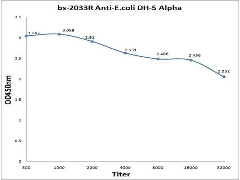 Background: This antibody reacts with Escherichia coli HD5a (E.coli HD5a), Escherichia coli is a gram-negative bacillus that belongs to a larger group of Enterobacteriae - bacteria that inhabit the gastrointestinal tract. Although usually a harmless resident of the gut, some strains have the potential to cause serious problems, especially where there is an immature immune system or immunosuppression, or where the subtype of organism has acquired the ability to produce pathogenic toxins. E. coli DH5_ strain is an engineering strain widely used in biopharmaceuticals. According to the requirements of product quality inspection, it is necessary to detect the residual amount of DH5_ bacterial protein in biological products. This product is an anti-serum obtained by immunizing rabbits with DH5_ bacterial protein as an antigen, and purified by affinity chromatography to obtain antibody IgG, which can be used for ELISA, Western Blot and other experimental tests.