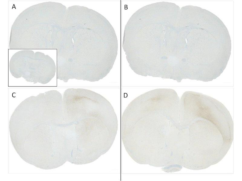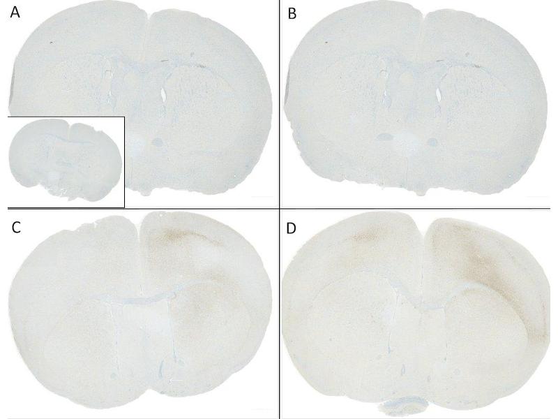 A 1:500 dilution of ABIN6932861 was sufficient for detection of Alpha Synuclein pSer129 in 10 μg of Mouse Brain by ECL immunoblot analysis using Goat Anti-Rabbit IgG:HRP as the secondary antibody.