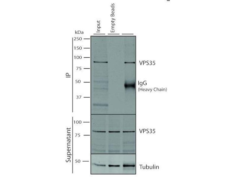 A 1:1000 dilution of ABIN6932950 was sufficient for detection of VPS35 in 10 μg of SH-SY5Y by ECL immunoblot analysis using Goat Anti-Mouse IgG:HRP as the secondary antibody.