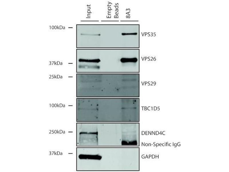 A 1:1000 dilution of ABIN6932974 was sufficient for detection of VPS35 in 10 μg of SH-SY5Y by ECL immunoblot analysis using Goat Anti-Mouse IgG:HRP as the secondary antibody.