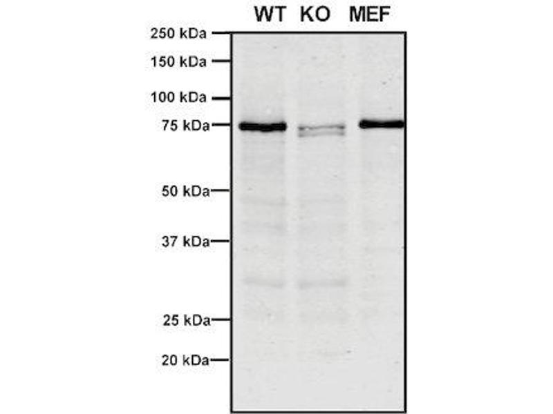 - Ubiquitous. Highly expressed in brain, colon, heart, kidney, ovary, placenta, skeletal muscle, small intestine, testis, thymus.,Detects ~92 kDa.