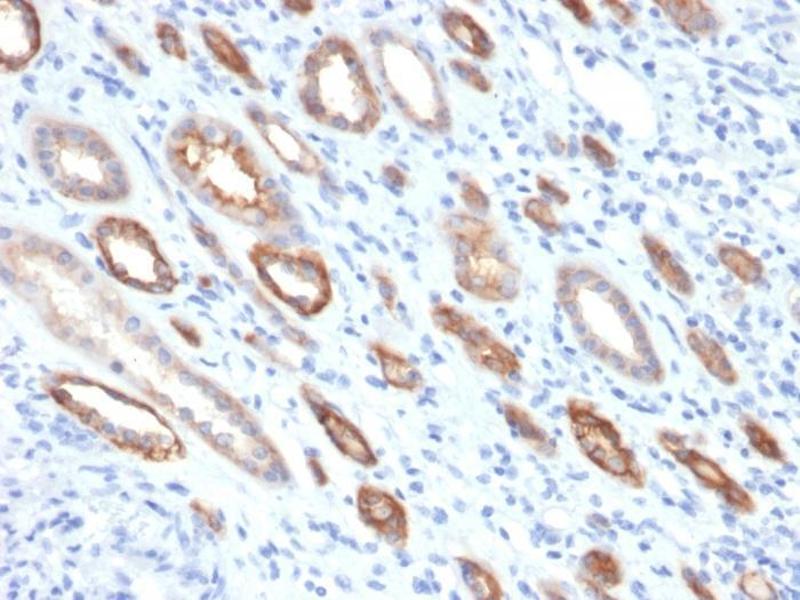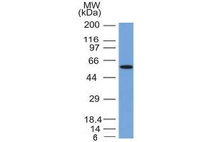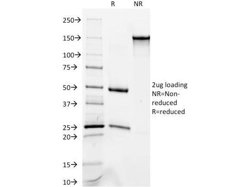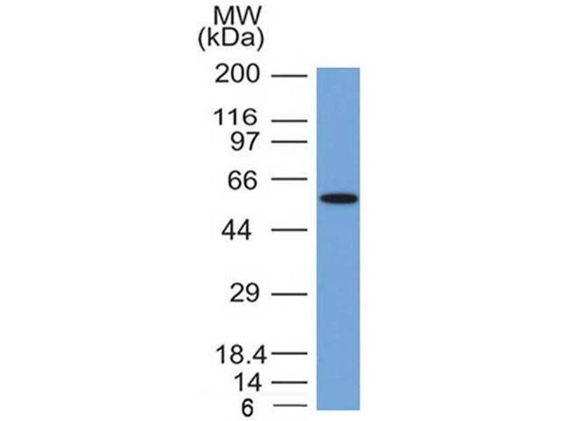 Known Application: Western Blot (1-2 μg/mL),Immunohistochemistry (Formalin-fixed) (1-2 μg/mL for 30 minutes at RT)(Staining of formalin-fixed tissues requires heating tissue sections in 10 mM Tris with 1 mM EDTA, pH 9.0, for 45 min at 95°C followed by cooling at RT for 20 minutes), Optimal dilution for a specific application should be determined.