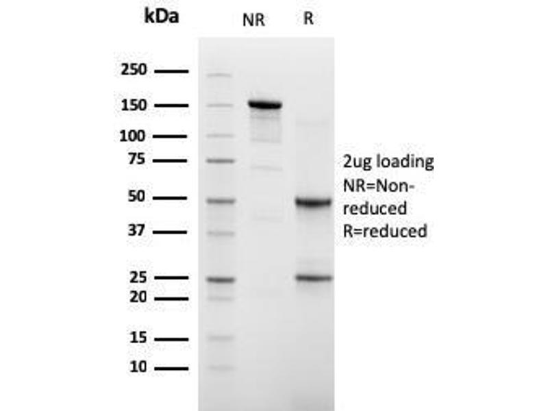 Known Application: ELISA (For coating, order Ab without BSA),Immunohistochemistry (Formalin-fixed) (1-2 μg/mL for 30 minutes at RT)(Staining of formalin-fixed tissues requires heating tissue sections in 10 mM Tris with 1 mM EDTA, pH 9.0, for 45 min at 95°C followed by cooling at RT for 20 minutes), Optimal dilution for a specific application should be determined.