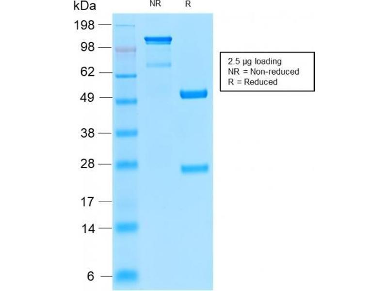 Known Application: Immunohistochemistry (Formalin-fixed) (1-2 μg/mL for 30 minutes at RT)(Staining of formalin-fixed tissues requires heating tissue sections in 10 mM Tris with 1 mM EDTA, pH 9.0, for 45 min at 95°C followed by cooling at RT for 20 minutes), Optimal dilution for a specific application should be determined.