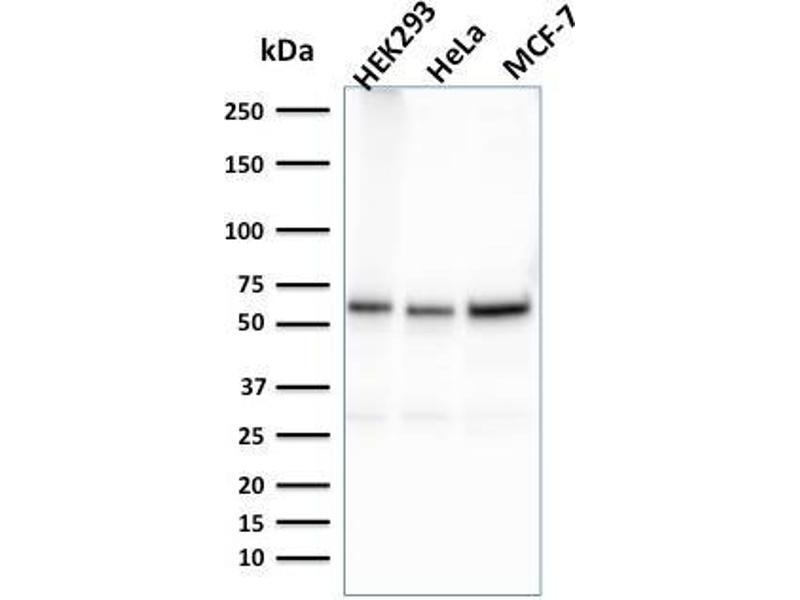 Positive Control: HEK293, MCF-7, HeLa whole cell lysate. Human testis, prostate, breast carcinoma or colon carcinoma.