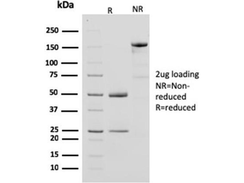 Known Application: Immunohistochemistry (Formalin-fixed) (1-2 μg/mL for 30 minutes at RT)(Staining of formalin-fixed tissues requires boiling tissue sections in 10 mM citrate buffer, pH 6.0, for 10-20 min followed by cooling at RT for 20 minutes)Optimal dilution for a specific application should be determined.
