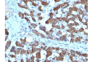 - This MAb recognizes a protein of 165 kDa, identified as carbamoyl phosphate synthetase 1 (CPS1). This mitochondrial enzyme catalyzes synthesis of carbamoyl phosphate from ammonia and bicarbonate. This reaction is the first committed step of the urea cycle, which is important in the removal of excess urea from cells.Deficiency of CPS1 is an autosomal recessive disorder that causes hyperammonemia. CPS1 is a hepatocyte specific protein that localizes to the mitochondria of hepatocytes. It is a sensitive marker for distinguishing hepatocellular carcinomas (HCC) from other metastatic carcinomas as well as cholangio-carcinomas. HCC's occur primarily in the stomach, but they are also found in many other organs. CPS1 may also be a useful marker for intestinal metaplasia. Reportedly, strong expression of CPS1 correlates with smaller tumor size and longer patient survival. Occasionally, CPS1 is also found in gastric carcinomas as well as in a few other non-hepatic tumors.