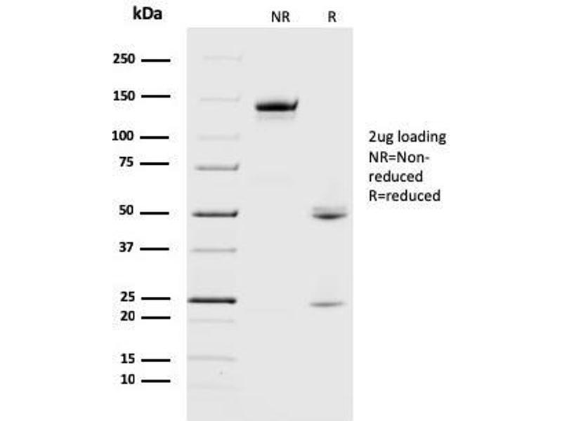 Known Application: Western Blot (0.5-1.0 μg/mL), Immunohistochemistry (Formalin-fixed) (0.5-1 μg/mL for 30 min at RT)(Staining of formalin-fixed tissues requires boiling tissue sections in 10 mM Citrate Buffer, pH 6.0, for 10-20 min followed by cooling at RT for 20 minutes)Optimal dilution for a specific application should be determined.