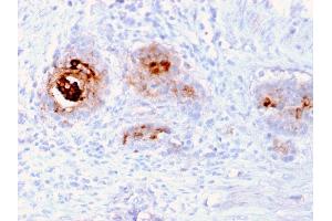 Known Application: Immunohistochemistry (Formalin-fixed) (0.5-1 μg/mL for 30 minutes at RT) (Staining of formalin-fixed tissues requires boiling tissue sections in 10 mM citrate buffer, pH 6.0, for 10-20 min followed by cooling at RT for 20 minutes)Optimal dilution for a specific application should be determined.