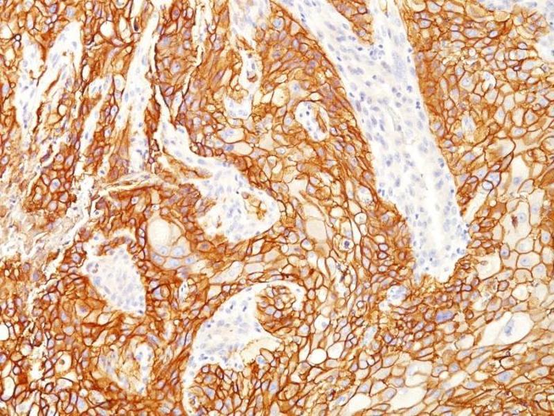 - This MAb recognizes a protein of 170 kDa, identified as EGFR. EGFR is type I receptor tyrosine kinase with sequence homology to erbB-1, -2, -3 -4 or HER-1, -2, -3 -4. It binds to Epidermal Growth Factor (EGF), Transforming Growth Factor-a (TGF-a), Heparin-binding EGF (HB-EGF), amphiregulin, betacellulin and epiregulin. EGFR is overexpressed in tumors of breast, brain, bladder, lung, gastric, head neck, esophagus, cervix, vulva, ovary, and endometrium. It is predominantly present in squamous cell carcinomas.