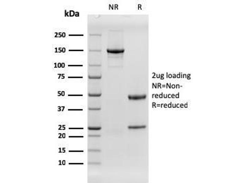 Known Application: Immunohistochemistry (Formalin-fixed) (1-2 μg/mL for 30 minutes at RT)(Staining of formalin-fixed tissues requires boiling tissue sections in 10 mM citrate buffer, pH 6.0, for 10-20 min followed by cooling at RT for 20 minutes)Optimal dilution for a specific application should be determined.