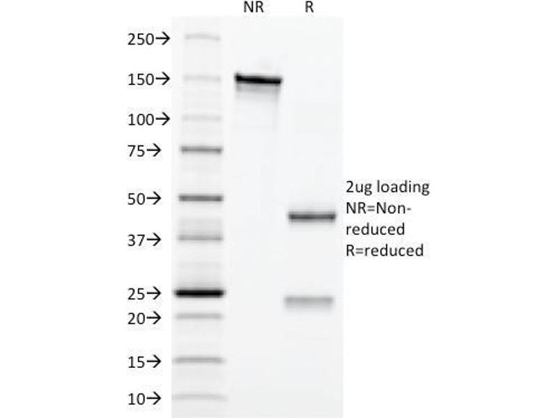 Known Application: ELISA (Use Ab at 2-4 μg/mL for coating) (Order Ab without BSA), Immunohistochemistry (Formalin-fixed) (2-4 μg/mL for 30 min at RT)(Staining of formalin-fixed tissues requires boiling tissue sections in 10 mM Citrate Buffer, pH 6.0, for 10-20 min followed by cooling at RT for 20 minutes)Optimal dilution for a specific application should be determined.