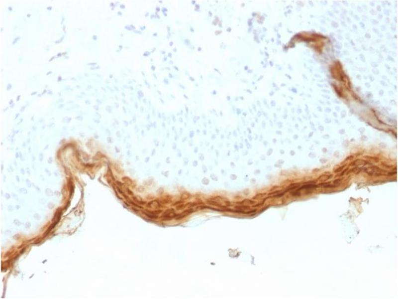 Known Application: Immunohistochemistry (Formalin-fixed) (0.5-1 μg/mL for 30 minutes at RT)(Staining of formalin-fixed tissues is enhanced by boiling tissue sections in 10 mM Citrate Buffer, pH 6.0, for 10-20 min followed by cooling at RT for 20 minutes)Optimal dilution for a specific application should be determined.