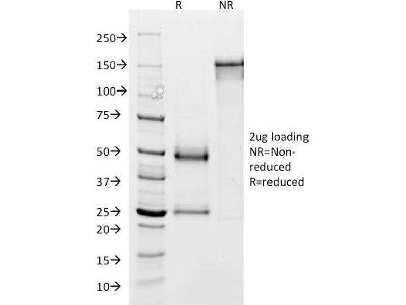 Known Application: ELISA (Use Ab at 2-4 μg/mL for coating) (Order Ab without BSA), Immunohistochemistry (Formalin-fixed) (1-2 μg/mL for 30 minutes at RT)(Staining of formalin-fixed tissues requires boiling tissue sections in 10 mM citrate buffer, pH 6.0, for 10-20 min followed by cooling at RT for 20 minutes)Optimal dilution for a specific application should be determined.