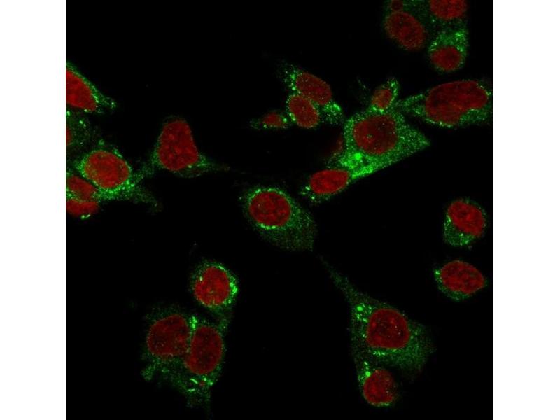 Known Application: ELISA (For coating, order antibody without BSA), Flow Cytometry (0.5-1 μg/million cells), Immunofluorescence (1-2 μg/mL), Immunohistochemistry (Formalin-fixed) (1-2 μg/mL for 30 minutes at RT)(Staining of formalin-fixed tissues requires boiling tissue sections in 10 mM citrate buffer, pH 6.0, for 10-20 min followed by cooling at RT for 20 minutes)Optimal dilution for a specific application should be determined.