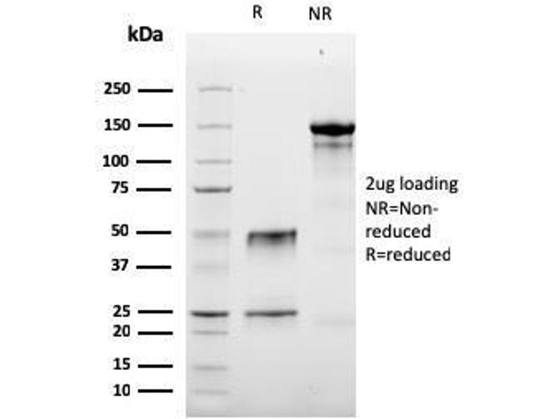 Known Application: Immunohistochemistry (Formalin-fixed) (1-2 μg/mL for 30 minutes at RT)(Staining of formalin-fixed tissues requires boiling tissue sections in 10 mM Citrate buffer, pH 6.0, for 10-20 min followed by cooling at RT for 20 minutes)Optimal dilution for a specific application should be determined.