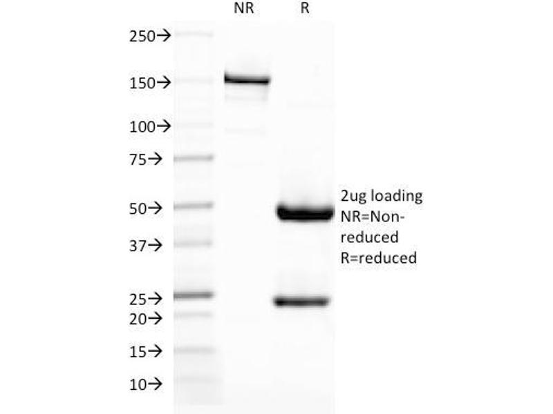 Known Application: Western Blot (0.5-1 μg/mL), Immunohistochemistry (Formalin-fixed) (0.5-1 μg/mL for 30 minutes at RT),(Staining of formalin-fixed tissues is enhanced by boiling tissue sections in 10 mM Tris with 1 mM EDTA Buffer, pH 9.0, for 10-20 min followed by cooling at RT for 20 minutes),Optimal dilution for a specific application should be determined.