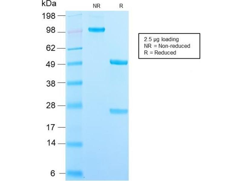 Known Application: Immunohistochemistry (Formalin-fixed) (0.5-1 μg/mL for 30 minutes at RT),(Staining of formalin-fixed tissues is enhanced by boiling tissue sections in 10 mM Tris with 1 mM EDTA Buffer, pH 9.0, for 10-20 min followed by cooling at RT for 20 minutes),Optimal dilution for a specific application should be determined.