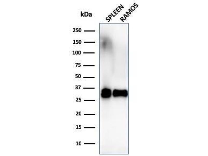 Positive Control: Raji, Ramos, Daudi or HuT78 cells. Spleen, Tonsil or lymph node.