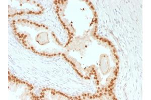 Known Application: Immunohistochemistry (Formalin-fixed) (1-2 μg/mL for 30 minutes at RT)(Staining of formalin-fixed tissues is enhanced by boiling tissue sections in 10 mM Tris with 1 mM EDTA, pH 9.0 for 10-20 min followed by cooling at RT for 20 minutes)Optimal dilution for a specific application should be determined.