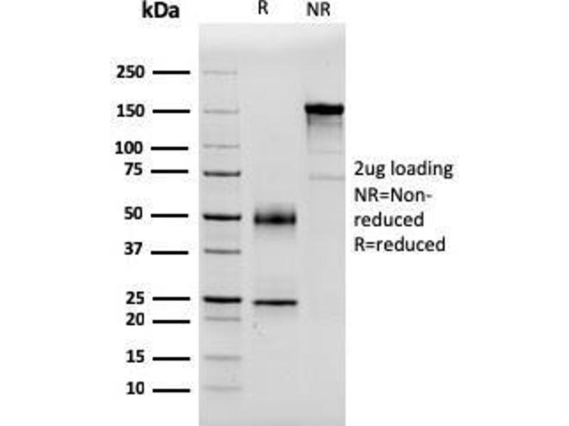 Known Application: Immunohistochemistry (Formalin-fixed) (1-2 μg/mL for 30 minutes at RT) ,(Staining of formalin-fixed tissues requires boiling tissue sections in 10 mM citrate buffer, pH 6.0, for 10-20 min followed by cooling at RT for 20 minutes),Optimal dilution for a specific application should be determined.