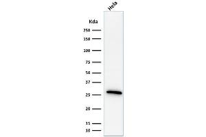 Positive Control: MCF-7 cells. ~50 % of Breast Carcinomas are positive for hsp27 especially those that are also positive for ER and/or PgR. HeLa cells.