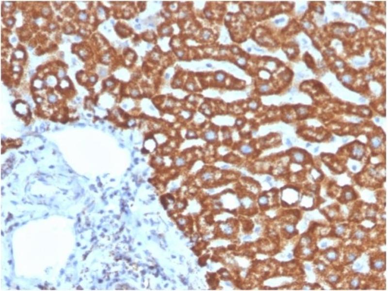 Positive Control: HeLa or HepG2 cells. Synovial biopsies from patients with juvenile chronic arthritis. Synovial lining layer is strongly positive for hsp60. Breast carcinoma.
