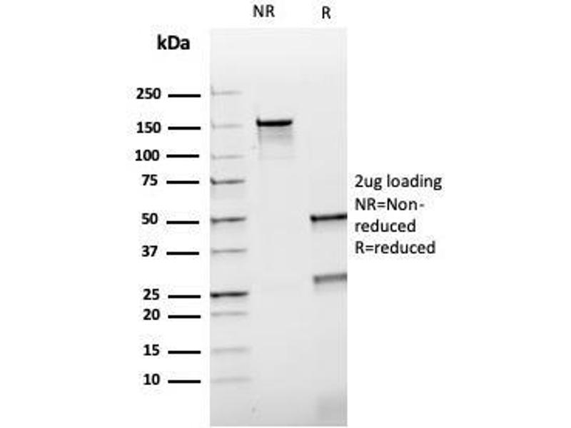 Known Application: Western Blot (0.25-0.5 μg/mL), Immunohistochemistry (Formalin-fixed) (0.5-1 μg/mL for 30 minutes at RT)(Staining of formalin-fixed tissues is enhanced by boiling tissue sections in 10 mM Citrate Buffer, pH 6.0, for 10-20 min followed by cooling at RT for 20 minutes)Optimal dilution for a specific application should be determined.