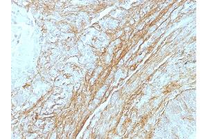 Positive Control: Extracellular matrix in tonsil and blood vessels. Stroma of many tumors such as breast, squamous cell and lung carcinomas. Staining of normal fibroblasts serves as internal positive control.