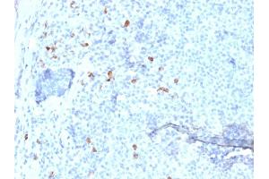 Known Application: Immunohistochemistry (Formalin-fixed) (0.5-1.0 μg/mL for 30 minutes at RT)(Staining of formalin-fixed tissues is enhanced by boiling tissue sections in 10 mM Tris with 1 mM EDTA, pH 9.0 for 10-20 min followed by cooling at RT for 20 minutes)Optimal dilution for a specific application should be determined.