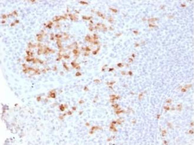 Known Application: Immunohistochemistry (Formalin-fixed) (0.5-1.0 μg/mL for 30 min at RT)(Staining of formalin-fixed tissues requires boiling tissue sections in 10 mM Citrate Buffer, pH 6.0, for 10-20 min followed by cooling at RT for 20 minutes)Optimal dilution for a specific application should be determined.