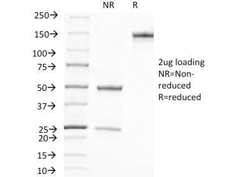 Known Application: Immunohistochemistry (Formalin-fixed) (1-2 μg/mL for 30 minutes at RT) (Staining of formalin-fixed tissues requires boiling tissue sections in 10 mM citrate buffer, pH 6.0, for 10-20 min followed by cooling at RT for 20 minutes)Optimal dilution for a specific application should be determined.