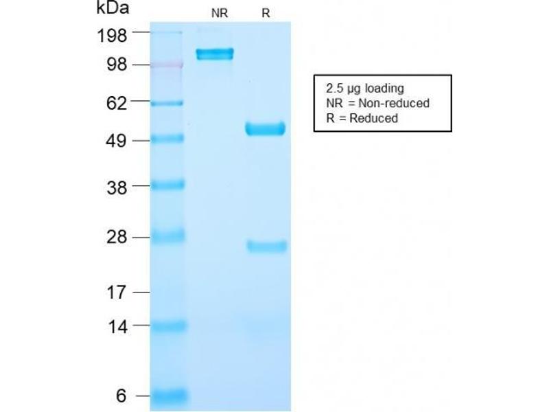 Known Application: Immunohistochemistry (Formalin-fixed) (0.5-1.0 μg/mL for 30 minutes at RT) (Staining of formalin-fixed tissues is enhanced by boiling tissue sections in 10 mM Tris with 1 mM EDTA, pH 9.0 for 10-20 min followed by cooling at RT for 20 minutes)Optimal dilution for a specific application should be determined.