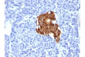 - Recognizes a polypeptide which is identified as insulin, a 51-amino acid polypeptide composed of A and B chains connected through the C-peptide. Proinsulin, which has very little biological activity, is cleaved by proteases within its cell of origin into the insulin molecule and the C-terminal basic residue. Insulin enhances membrane transport of glucose, amino acids, and certain ions. It also promotes glycogen storage, formation of triglycerides, and synthesis of proteins and nucleic acids. Deficiency of insulin results in diabetes mellitus. The main storage site for insulin is the pancreatic islets. Antibodies to insulin are important as beta-cell and insulinoma marker.