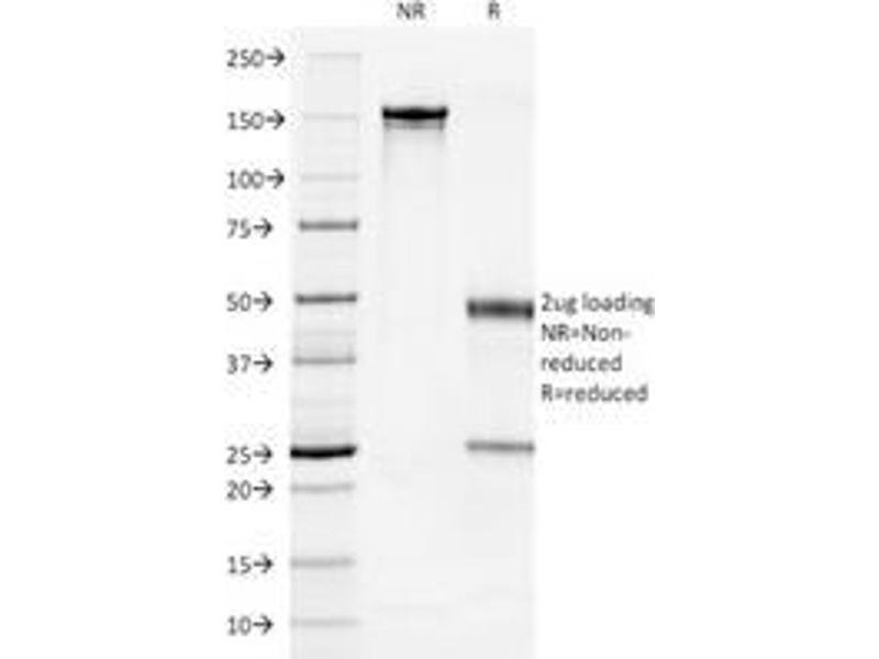 Known Application: Western Blot (1-2 μg/mL), Flow Cytometry (1-2 μg/million cells), Immunofluorescence (1-2 μg/mL), Immunohistochemistry (Formalin-fixed) (1-2 μg/mL for 30 min at RT)(Staining of formalin-fixed tissues requires boiling tissue sections in 10 mM Citrate Buffer, pH 6.0, for 10-20 min followed by cooling at RT for 20 minutes)Optimal dilution for a specific application should be determined.